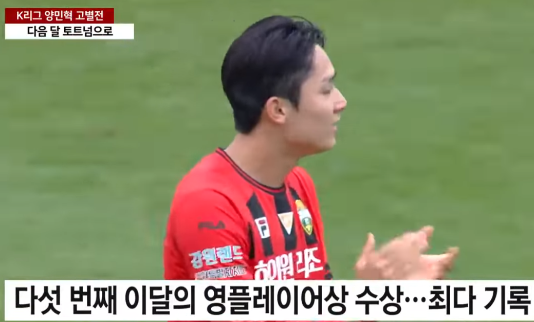 7월에는 'K리그 이달의 선수상'을 받기도 했다. 당초 강원에서 이번 시즌을 마친 뒤 합류하는 조건이었으나 포스테코글루 감독이 지휘하는 토트넘이 시즌 초반 어려움을 겪으며 합류 시점이 앞당겨질 가능성이 제기됐다.