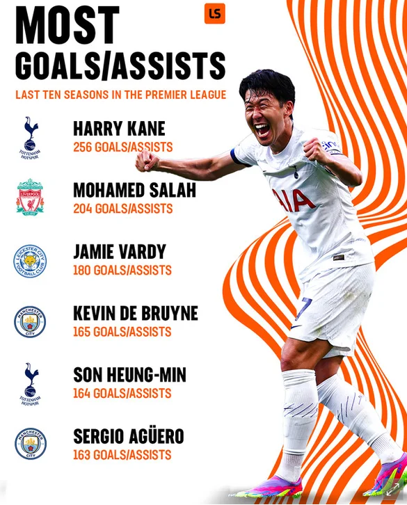 프리미어리그 토트넘에서 420경기출전 165골 88도움을 기록한 손흥민이 매체가 선정한 아시아 최고선수 1위에 올랐다. 그의 성과 중에서도 특히 주목할 만한 것은 프리미어리그에서의 득점 기록입니다.